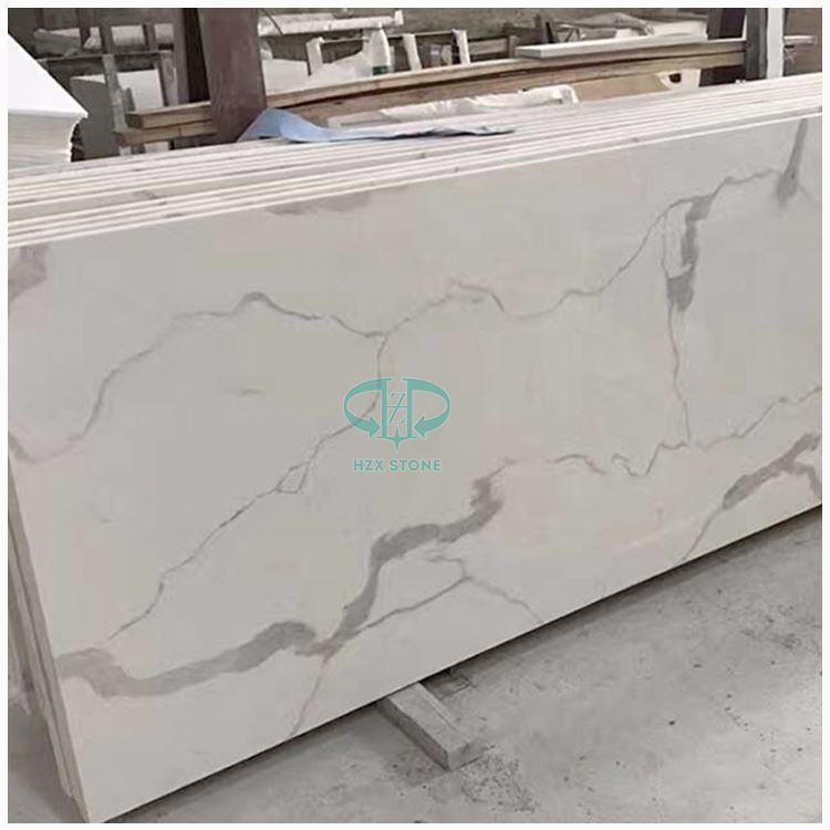 Calacatta quartz countertops are beautiful, unique pieces of stone that will add a magnificent look to a kitchen, bathroom, or any bar imaginable. Below are some semi-products of quartz kitchen countertop in Calcatta white color that are commonly available in HZX STONE Factory.